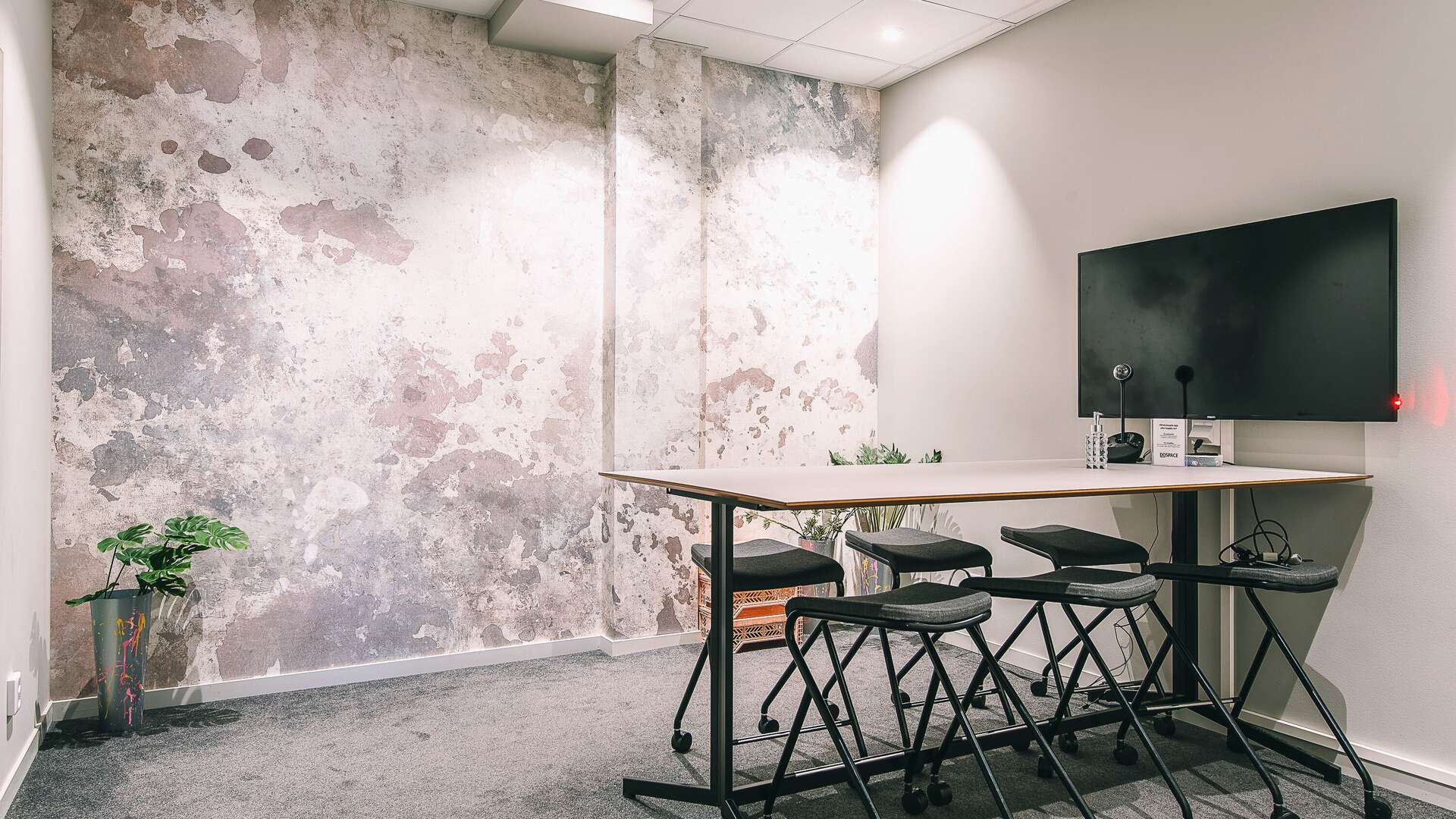 Rummet har whiteboard, tv-skärm och webbkamera.