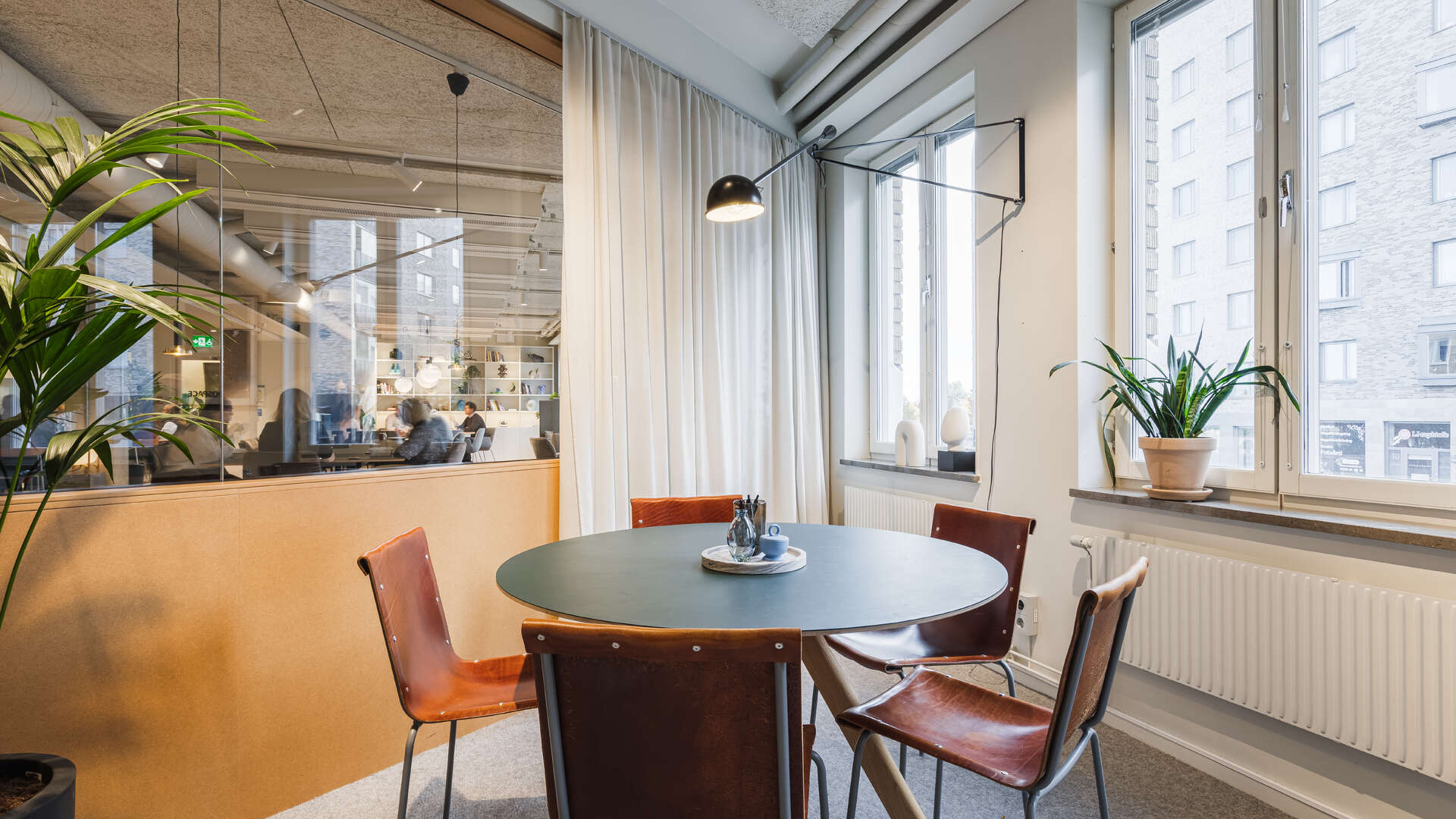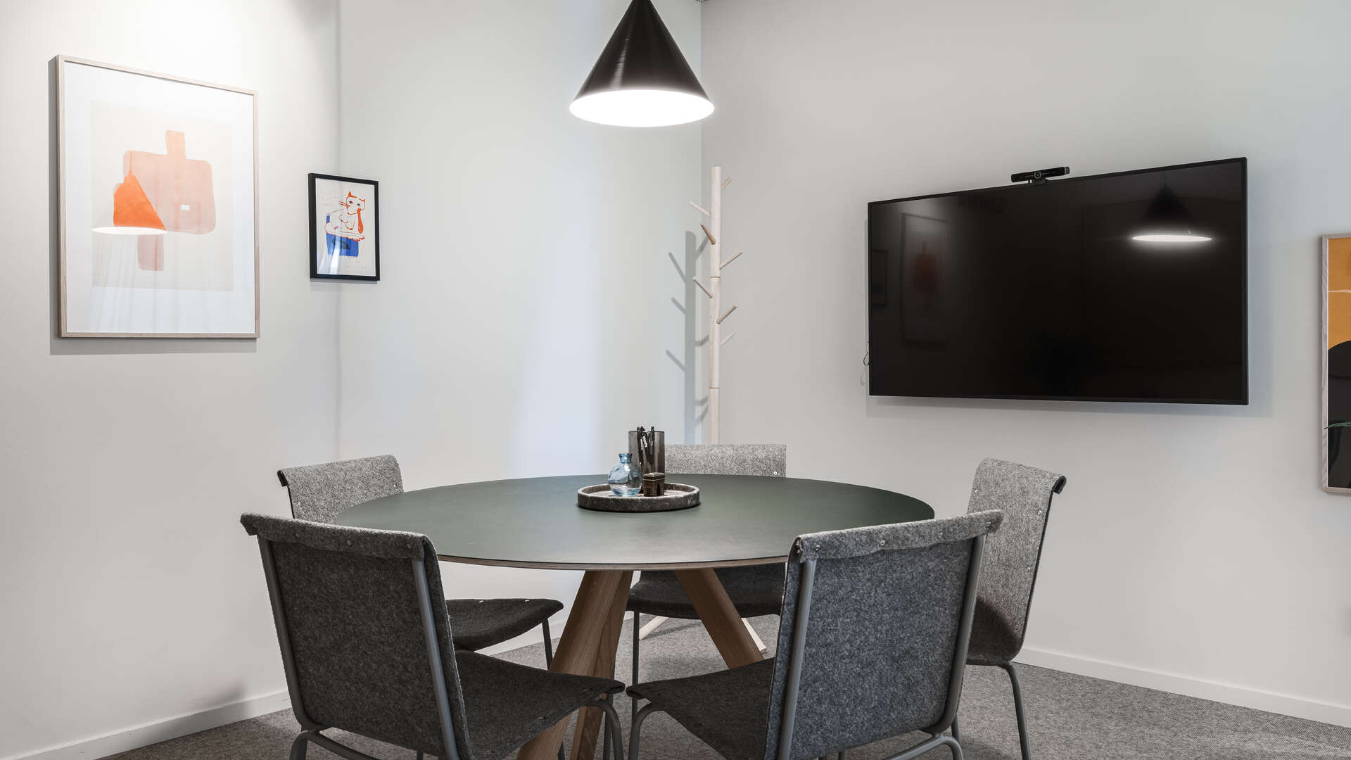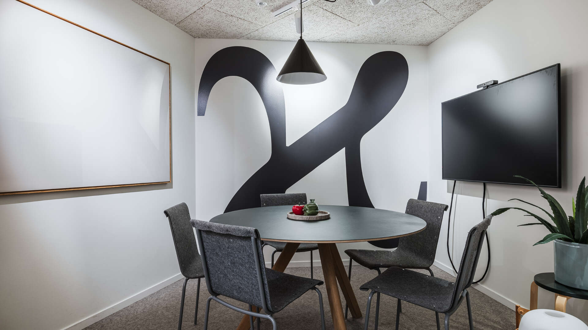 Rummet är utrustat med whiteboard, skärm och kamera. Plats för 6 personer.