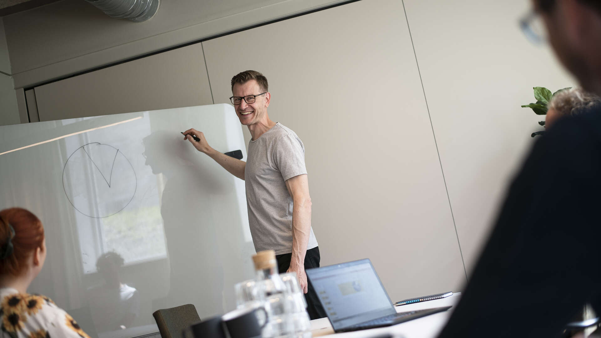Rummet är utrustat med whiteboard, skärm och kamera.